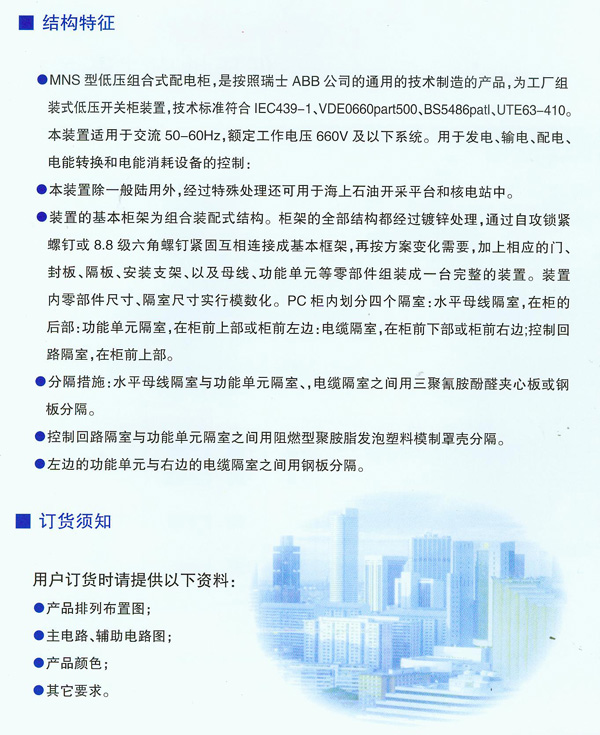 产品名称:MNS型低压组合式配电柜
